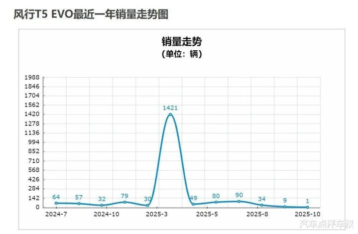 东风风行T5 EVO的10月销量仅有1辆,1-10月累计销量为1714辆,已处于被市场淘汰的边缘。销量数据背后,反映的是这款车型在价格、产品力、品牌等方面的全面竞争力不足。比如品牌力方面,作为一家以商用车起家的自主汽车企业,东风乘用车在消费者心中的品牌形象更多偏向商用属性,再加上近年来东风风行品牌在市场中的声量和影响力明显下滑。对于消费者而言,在购车决策中,品牌往往与可靠性、售后保障和二手车保值率直接挂钩,而风行品牌的弱势,使得风行T5 EVO在与一线自主品牌竞品的竞争中天然处于下风。