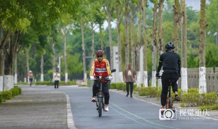 市民在绿树成荫的两江新区礼嘉山城步道骑行、漫步。记者张锦辉摄/视觉重庆