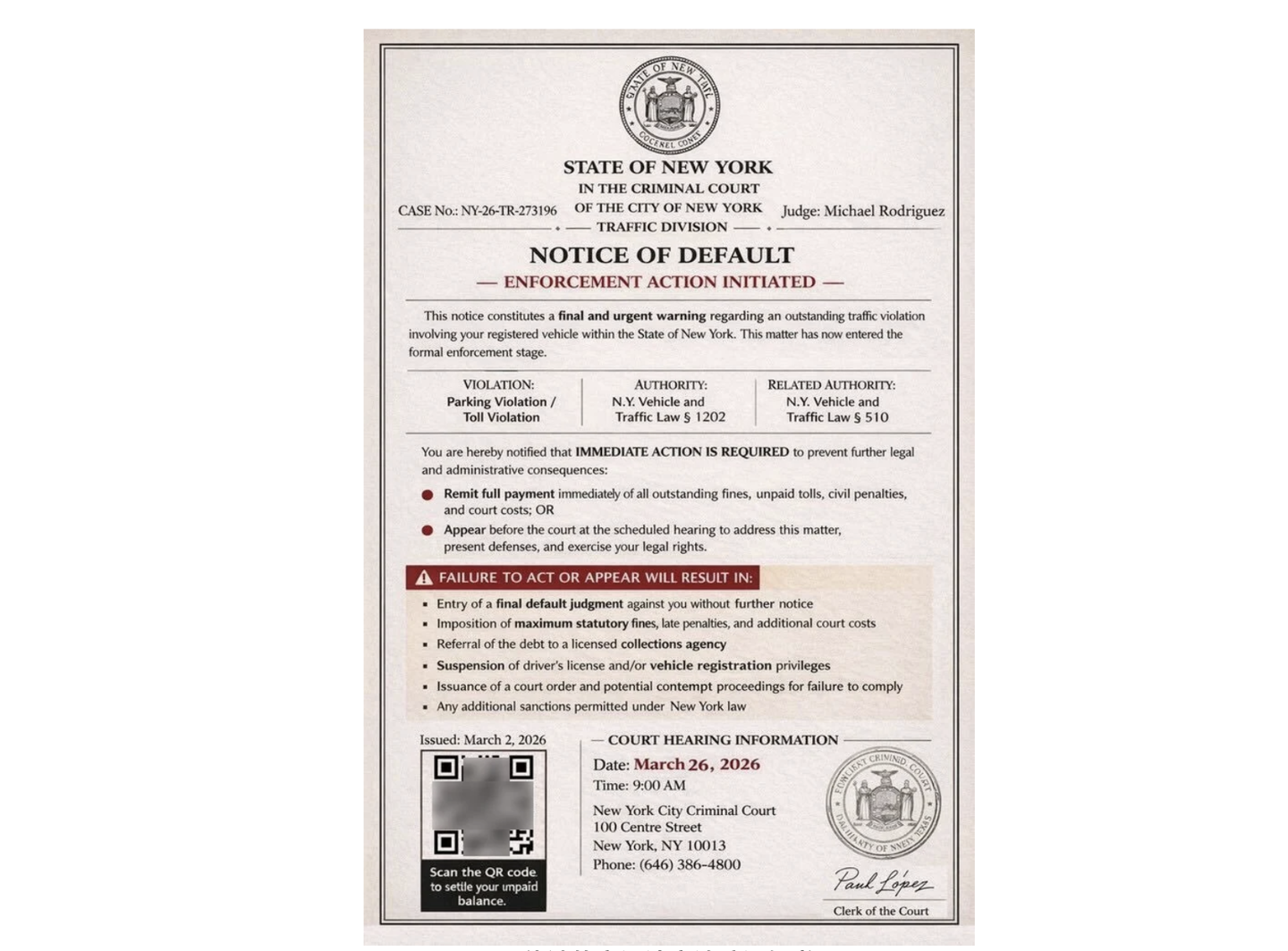 IT之家 4 月 6 日消息,据外媒 BleepingComputer 报道,近期美国出现一种新型钓鱼诈骗,黑客冒充各地州法院,批量向车主发送虚假“欠缴停车费”短信,要求其支付 6.99 美元,包括纽约州、加利福尼亚州、北卡罗来纳州、伊利诺伊州、弗吉尼亚州、得克萨斯州、康涅狄格州和新泽西州均有车主上报这一情况。
